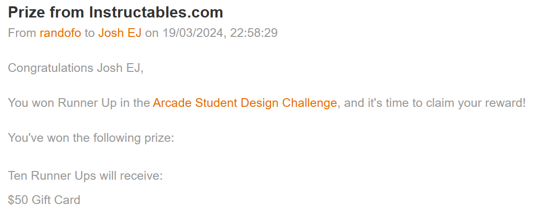 7. Runner Up in Autodesk Instructables Arcade Student Design Challenge.