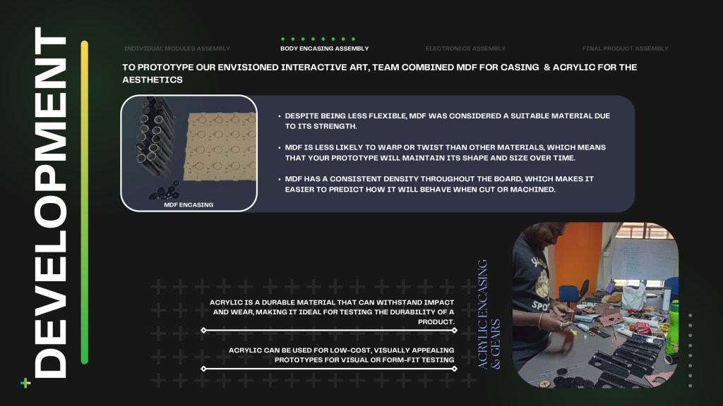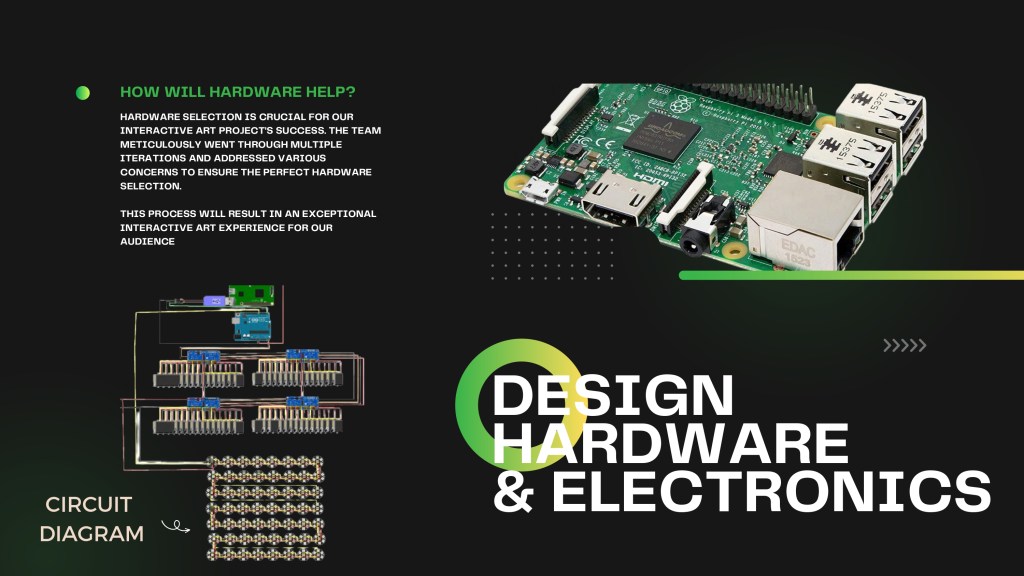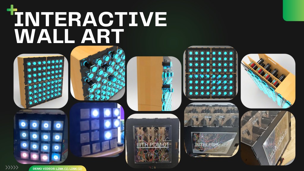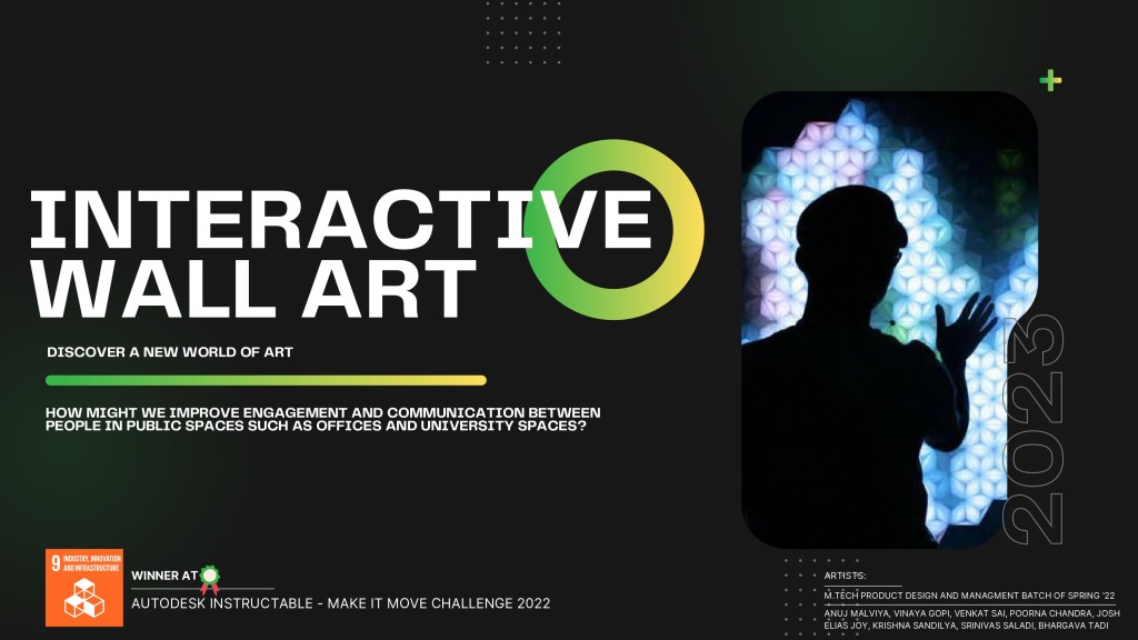 Interactive art is when people engage with a piece of art and expect some response to any stimulus. It is a good way to create fun experiences, especially in public spaces like offices and university spaces.